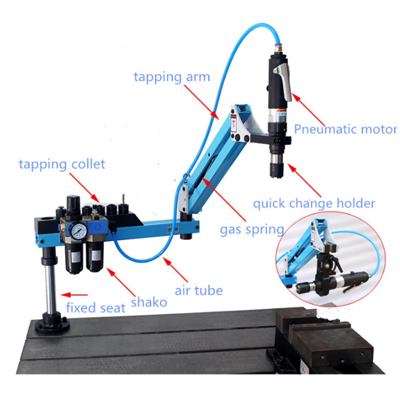 Product Name: M3-M12 Pneumatic Well Tapping Machine Universal Flexible Arm Automatic Horizontal Wire Air Tapping Tool Drilling Factory Outlet